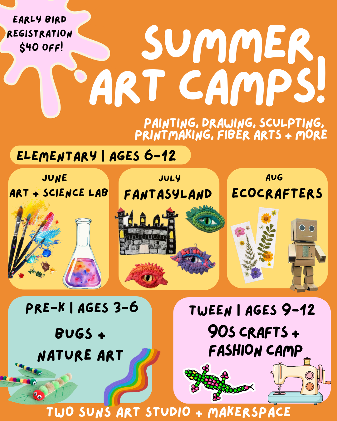 I look forward to creating with your kids/tweens this summer. Please reach out with any questions at taylor@twosunsartstudio.com or the button below